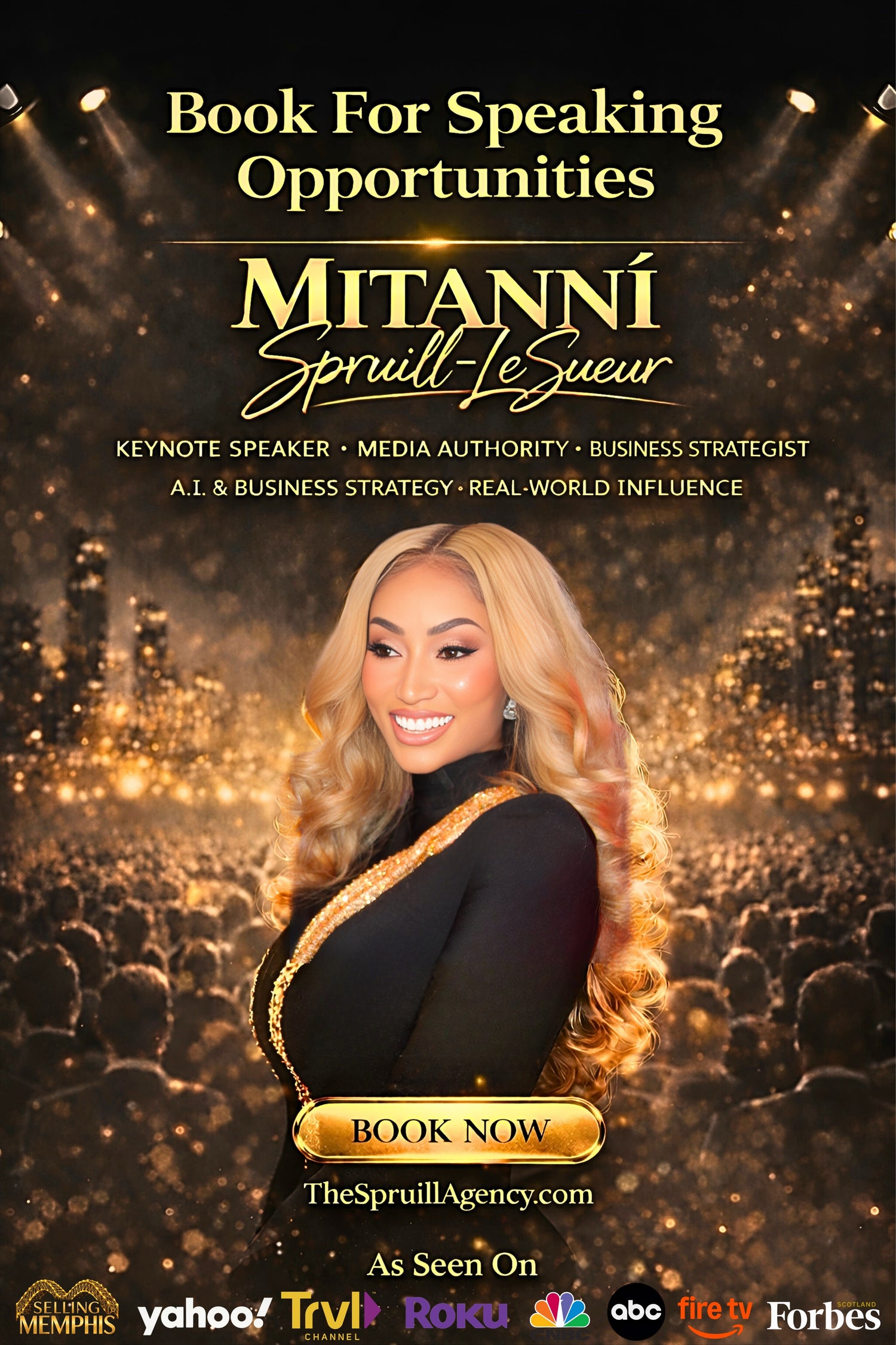 For a limited time, Mitanni is available globally for hosting private events and speaking engagements.Partner with Mitanní Spruill-LeSueur for a high-level consultation focused on legacy-building, wealth creation, and strategic influence across real estate and national media.
